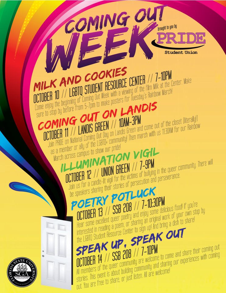Last week was National Coming Out Week on our campus. PRIDE hosts a Speak Up, Speak Out event every year where lgbtq tell their coming out stories or just listen to others tell theirs. The stories shock, amuse, and sadden you. Each person would talk about being let down with dating when first discovering their sexuality, first loves, disapproving parents that made them cry, their confusion or their clarity, bullying, and more. Everyone was real with their feelings and what they went through. In the end I really did feel the PRIDE community! I felt connected to these people I didn’t know so well but they were genuine and open with me. We were real with each other! What magnificence comes out of being honest with others!