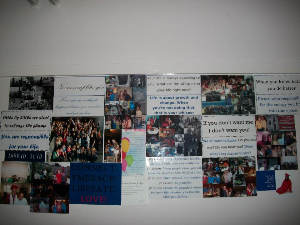 truly looked at it this time and read the quotes I intended to feel at the core of my heart and mind when I put them up there. “You are responsible for your life.” “No one completes you.” “When you know better, you do better.” “Please take responsibility for the energy you bring into this space.” but one of the most important is Oprah’s 4th lesson of life, “Be grateful.” Be grateful! I had not stayed true to this one the most. A later addition to my wall was “Live this day for Xand X” This addition came after the sudden death of a friend’s son.