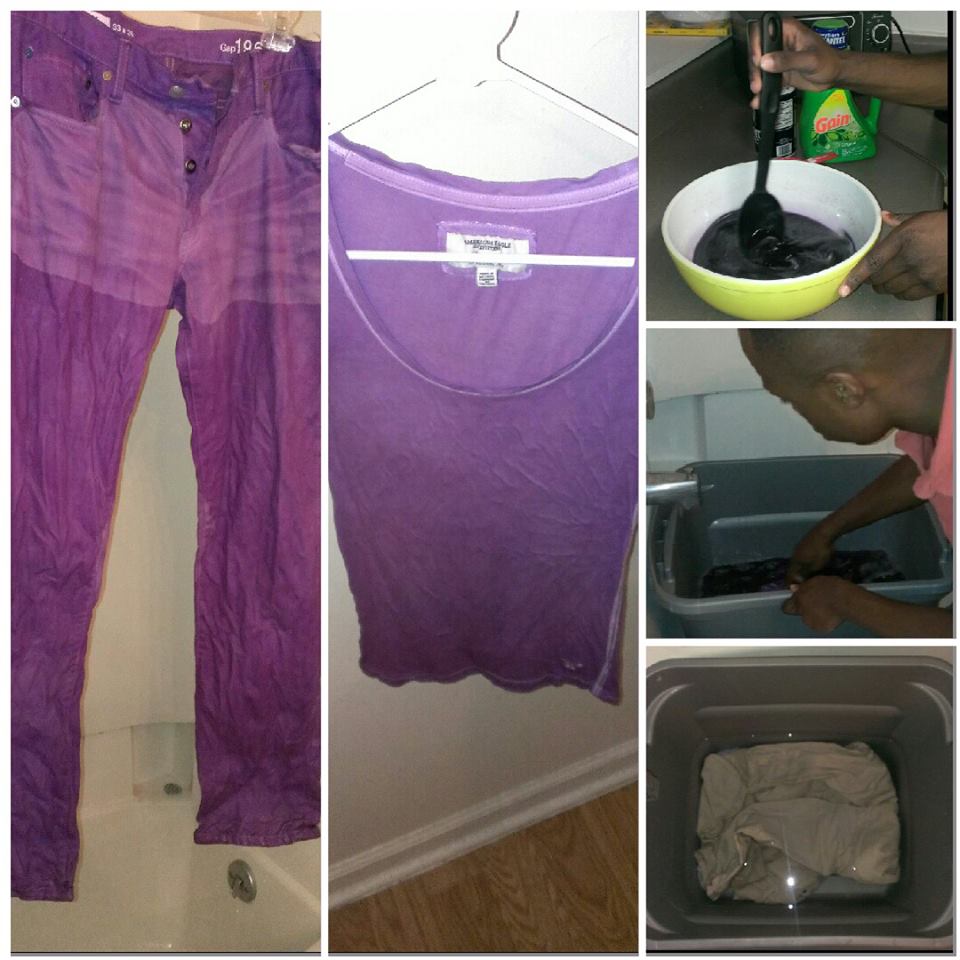 One day I was in Joann Fabrics when I came across the clothes’ dye area full of different RIT colors with instructions. I chose purple since the stains would be hidden.